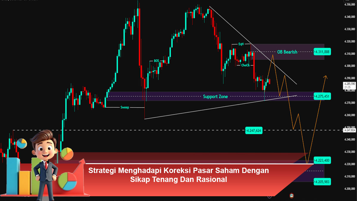 Koreksi pasar saham merupakan kondisi yang umum terjadi dalam siklus investasi. Penurunan harga saham dalam jangka pendek sering kali memicu kepanikan, terutama bagi investor pemula yang belum terbiasa menghadapi volatilitas pasar. Padahal, koreksi pasar tidak selalu menandakan krisis atau kegagalan investasi. Dengan strategi yang tepat, koreksi justru dapat menjadi momen refleksi dan penyesuaian agar keputusan investasi tetap selaras dengan tujuan jangka panjang. Sikap tenang dan rasional menjadi kunci utama dalam menghadapi situasi ini.